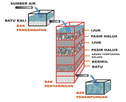 Filtrasi: Penyaringan air dengan melewatkannya melalui media berpori