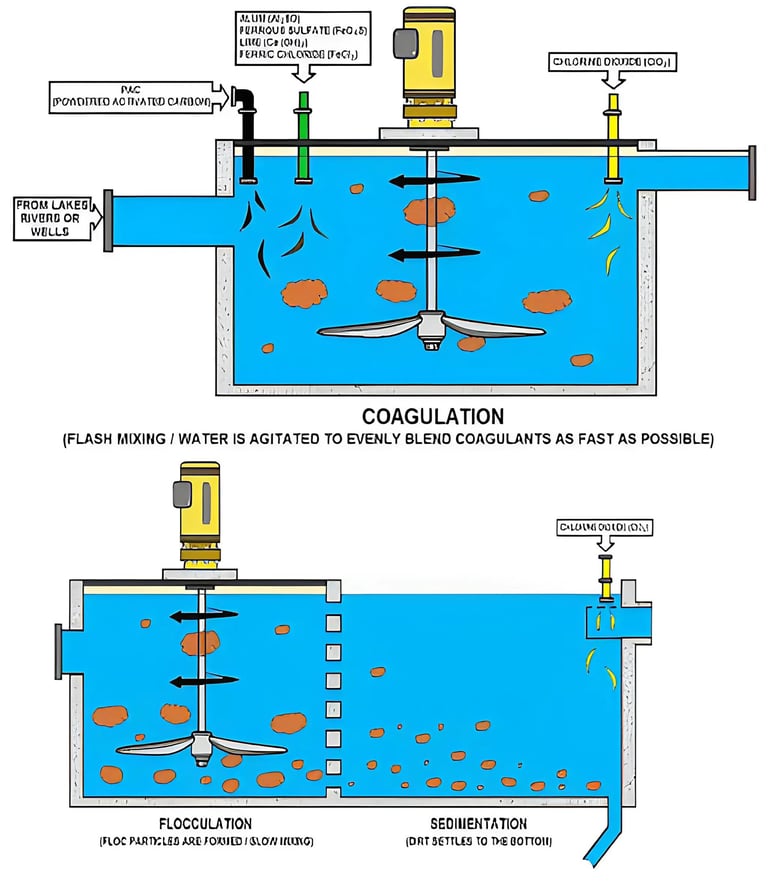 Koagulasi: Penambahan tawas untuk menggumpalkan partikel-partikel dalam air